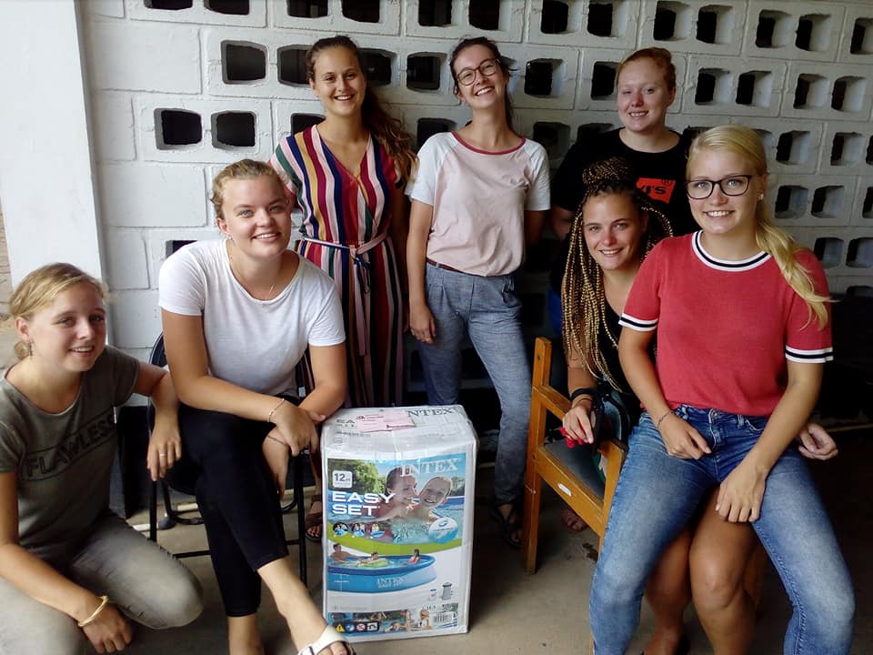 Studenten Esmee Kloeze, Germa Jongebloed, Joni Verschueren, Elena Houtain, (ex) Vrijwilliger Talitha Jansen, Ergotherapeut Kachiri de Borger en Marjet Hooijer en Lydia Noorland die onlangs hun stage bij ons hebben afgerond hebben een inzameling gehouden, en hebben ons een zwembad gedoneerd. Hier zijn we uiteraard hardstikke blij mee en het is tevens een leuke verrassing. Namens alle bewoners, medewerkers en directie van Stichting Betheljada hartelijk dank. Sommige studenten zien we nog en een aantal zien we vast nog eens terug. GRANTANGI.