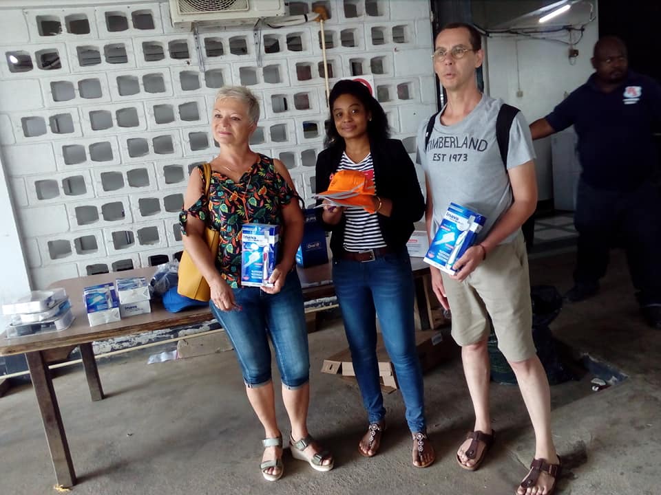 Op 6 decemberontvingen we van mevrouw Evelyne Vidil van EMEGA en Dr. Olivier MASIA een donatie van electrische tandenborstels, tandpasta, t shirts en caps voor onze bewoners. EMEGA uit Frans Guyana zet zich door middel van kunst en cultuur in voor mensen met een beperking. Onlangs bezochten wij hun mini-film festival te Lalla Rookh en doneerde zij ons o.a sensorisch speelgoed. Zij waren in het bijzijn van mevrouw Marianne Waloszek  en meneer Linhard Forkel van EMEGA.