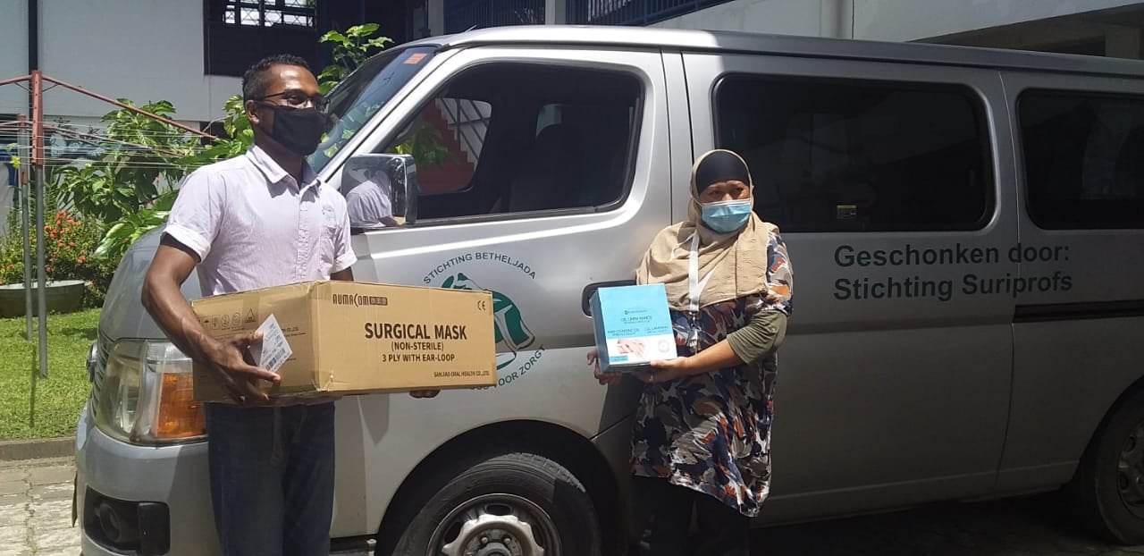 Op woensdag 18 augustus 2021 kwam dhr Ruiz Kartoredjo en zijn collega van DA Drogisterij & Parfumerie bij onze Stichting langs om een schenking van mondkapjes en handsantizers over te handigen. Wij zijn heel blij en dankbaar met deze donatie. En wij zullen er dagelijks goed gebruik van maken.