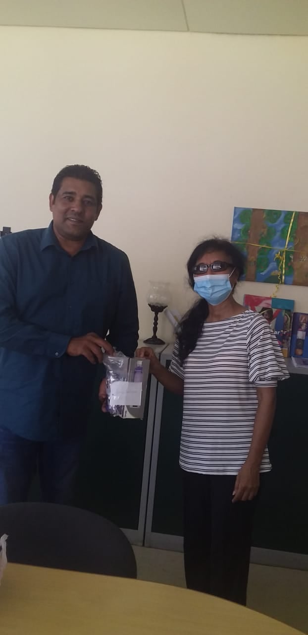 Op woensdag 1 september 2021 kwam mevrouw Chin namens Stichting Banner Ministries ons medische spullen schenken.Stichting Banner Ministries o.l.v. mevrouw Ingrid Kortstam staat aan de Dr. Sophie Redmondstraat in het NSBS (Nationale Stichting voor Blinden en Slechtzienden in Suriname ). Het is een Non Profit organisatie die zich ten doel stelt om onderricht te geven over het gebruik van vlaggen en banieren op bijbelse wijze.
