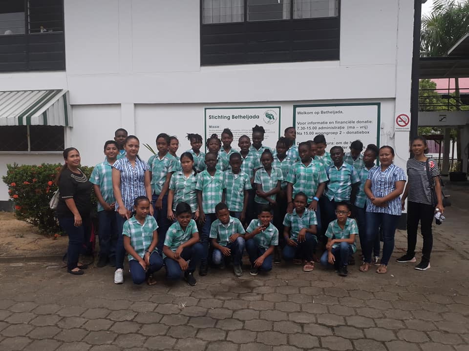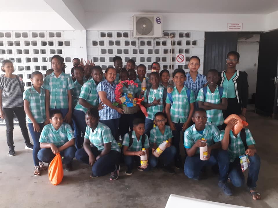 Op donderdag 7 maart ontvingen we bezoek van de 5 e en 6e klas van de HM Bielke school te Commewijne. De leraren, moeders en leerlingen hebben kennisgemaakt met onze bewoners en pupillen. Zij brachten pakketten met levensmiddelen en knutselgerei voor ons mee. Het was een plezierige kennismaking.